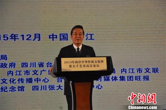 據(jù)悉,2015年兩岸中華傳統(tǒng)文化暨張大千藝術(shù)高層論壇由內(nèi)江市人民政府、四川省臺辦共同主辦。參加此次論壇兩岸嘉賓200余人,包括著名文學(xué)家、劇作家、詩人蘇叔陽,原中國文聯(lián)副主席、中國文藝評論家協(xié)會主席、中央文史研究館館員仲呈祥,著名劇作家、雜文家、辭賦家魏明倫,著名作家、詩人鄭愁予,著名書法家、臺灣中華書學(xué)會會長、臺灣淡江大學(xué)教授張炳煌等。
