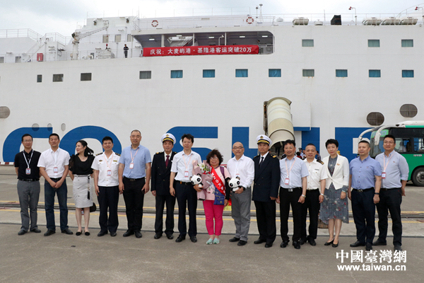 來自臺中的劉細妹是玉環市大麥嶼港對臺直航第20萬人次幸運旅客。(中國臺灣網 普燕 攝)