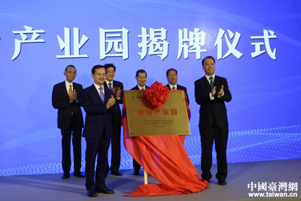 在兩岸企業家峰會嘉賓的見證下京臺產業園揭牌。(中國臺灣網 李奕均 攝)