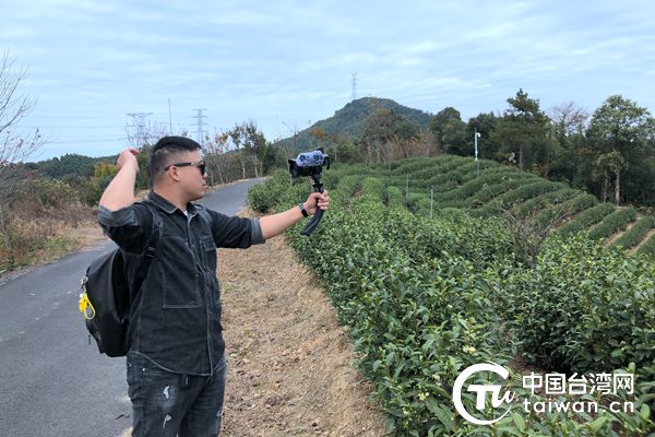 臺灣青年創作人森哥在安吉魯家村白茶園拍攝VOLG(中國臺灣網 符海川 攝)