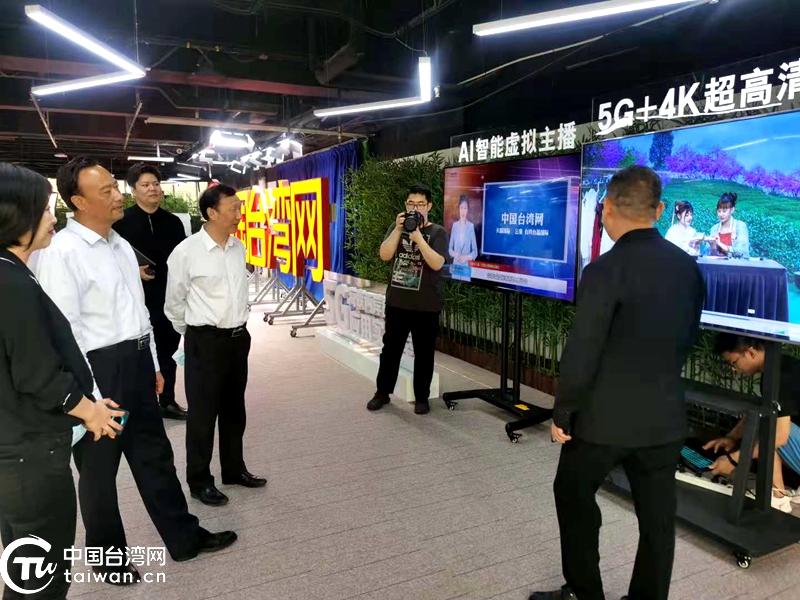 甘肅省臨夏州委常委、中共廣河縣委書(shū)記趙廷林一行了解海峽兩岸5G融媒體應(yīng)用實(shí)驗(yàn)室情況(中國(guó)臺(tái)灣網(wǎng) 張秉鐸 攝)