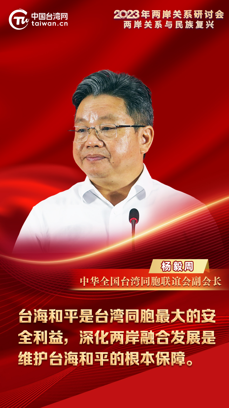 2023年兩岸關系研討會8月17日上午在四川成都開幕。中華全國臺灣同胞聯(lián)誼會副會長楊毅周在致辭時表示,臺海和平是臺灣同胞最大的安全利益,深化兩岸融合發(fā)展是維護臺海和平的根本保障。