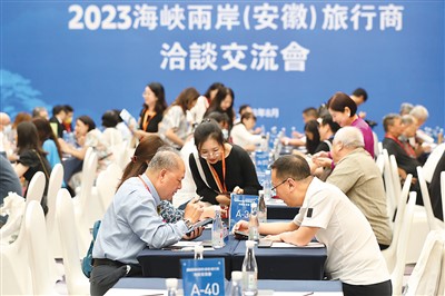 “這次見到許多臺灣來的新老朋友,向他們介紹了大陸近年來的變化。大家都希望兩岸旅游業盡早全面恢復交流合作,希望更多臺灣同胞到大陸深度旅游。”近日,2023海峽兩岸(安徽)旅行商大會在安徽舉辦,吸引兩岸旅游業界700多名嘉賓參加。前來參會的江蘇蘇州文化國際旅行社有限公司總經理張華明難掩興奮地對記者說。