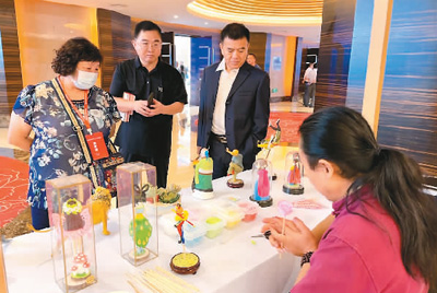 圖為兩岸旅游業者在觀賞非遺項目廬州面塑。