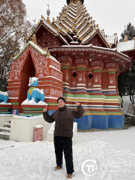 北京大學臺生鄭庭繹:二訪雪日的中華民族園。(中國臺灣網 發)