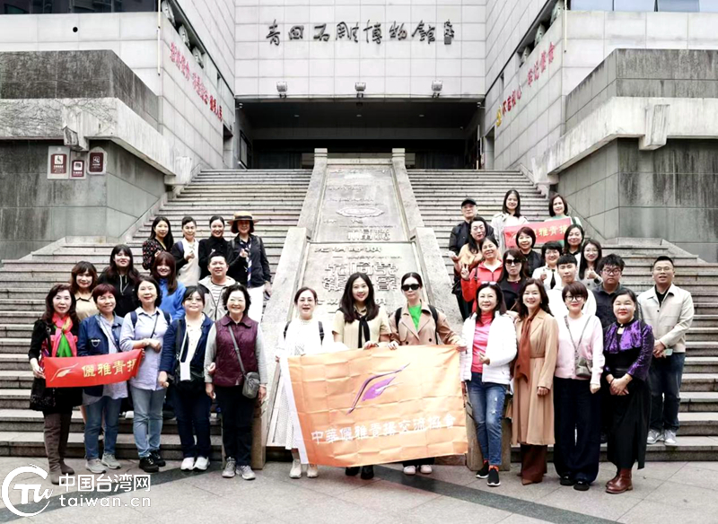 臺灣儷雅青揚交流協會參訪團在青田石雕博物館前合影。(中國臺灣網 發)
