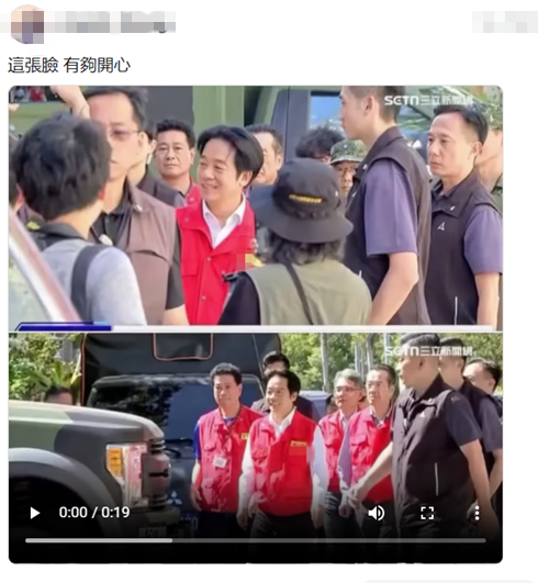 還有網友貼出賴清德在勘災中笑容滿面的照片,諷刺“這張臉有夠開心”。