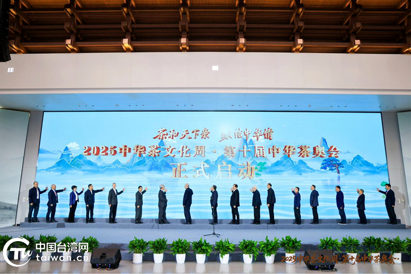 11月8日,以“茶和天下親,緣結中華情”為主題的2025中華茶文化周·第十屆中華茶奧會在浙江杭州龍塢茶鎮盛大啟幕。開幕式上,與會嘉賓共同啟動本屆活動。(中國臺灣網發)