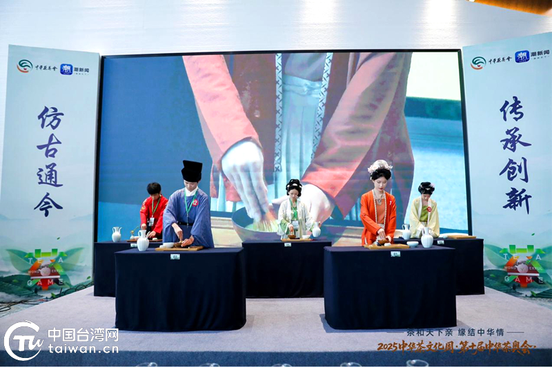仿宋茗戰比賽現場,參賽選手展示傳統技藝的傳承。(中國臺灣網發)