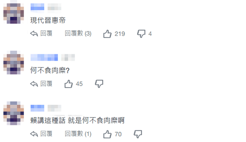 許多網(wǎng)友表示,“這句話就是韓國瑜說得比較貼切,莫忘臺灣人沒自己房子住的人太窮苦了”“宮廷內(nèi)怎知世上苦人多”“人民生活痛苦指數(shù)你可知道!有錢有閑?薪水追不上物價”。