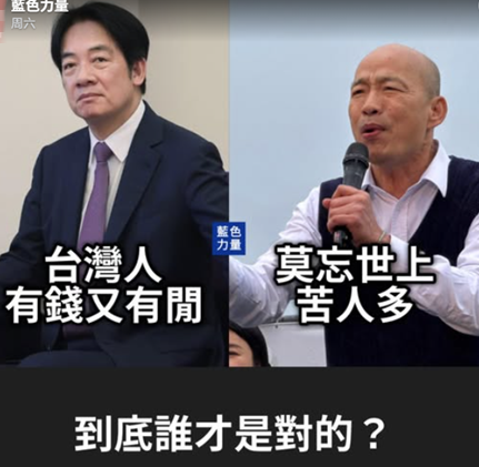 有粉絲專頁發(fā)文直言,賴清德的說法看似輕松,卻完全無視房價、工時、薪資停滯等沉重現(xiàn)實,脫離現(xiàn)實到可怕的地步。比起賴清德,韓國瑜的金句“莫忘世上苦人多”到現(xiàn)在都還貼近老百姓。此話一出,有一千多名網(wǎng)友涌入點贊。