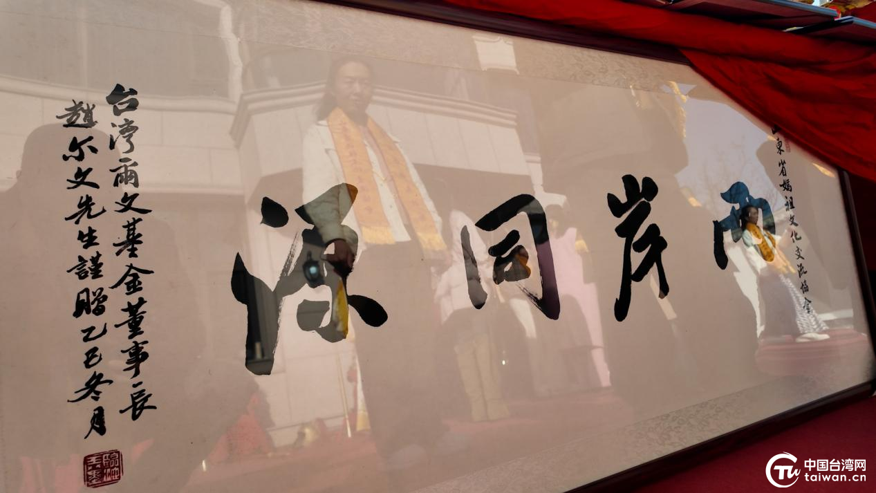 臺(tái)灣爾文基金會(huì)董事長(zhǎng)趙爾文先生題贈(zèng)“兩岸同源”牌匾(中國(guó)臺(tái)灣網(wǎng)記者 李鑫 攝)