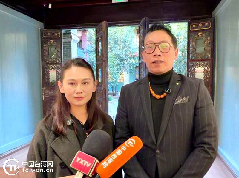 在地臺商許振文夫妻活動結束后接受記者采訪(中國臺灣網記者 葉春祿 攝)