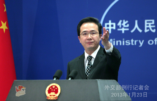 2013年1月23日,外交部發(fā)言人洪磊主持例行記者會(huì)。
