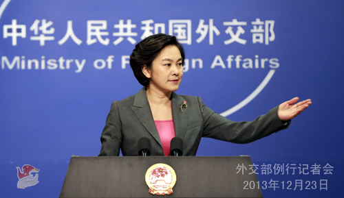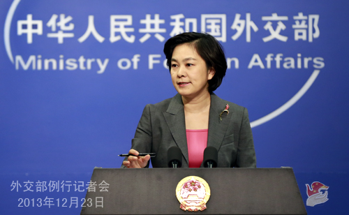 2013年12月23日,外交部發言人華春瑩主持例行記者會。