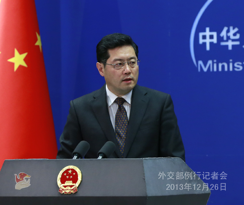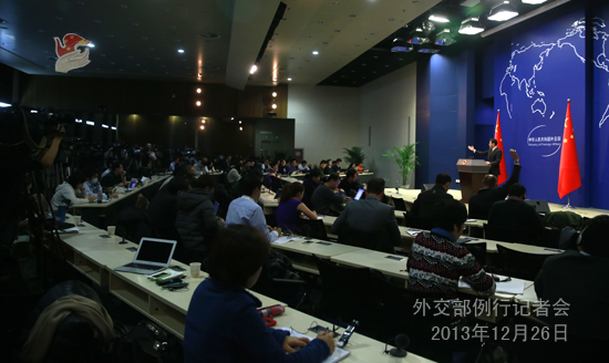 2013年12月26日,外交部發言人秦剛主持例行記者會。