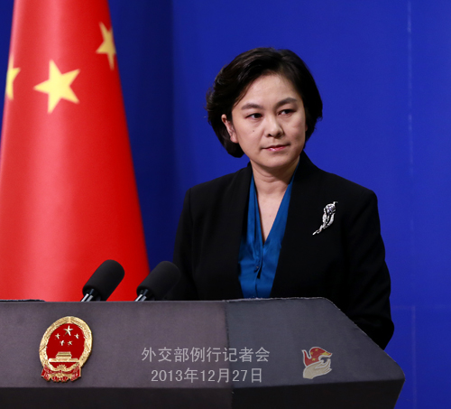 2013年12月27日,外交部發言人華春瑩主持例行記者會。