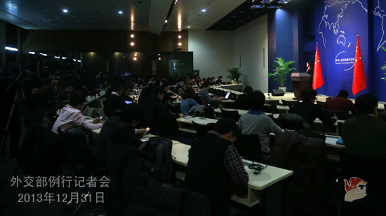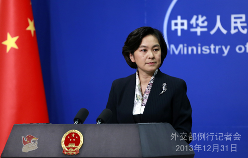 2013年12月31日,外交部發言人華春瑩主持例行記者會。