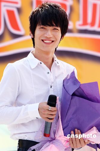 2007年10月28日,超女厲娜和快男陳楚生在南寧參加中國—東盟博覽會為某汽車品牌的新車首發式作宣傳,厲娜和陳楚生為到場的觀眾各獻上三首歌曲,厲娜還臨時客串了一把車模。 中新社發 駱文剛 攝