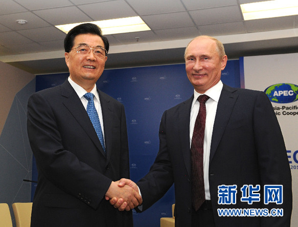 國(guó)家主席胡錦濤7日在俄羅斯符拉迪沃斯托克同俄羅斯總統(tǒng)普京舉行會(huì)晤,就中俄關(guān)系和其他共同關(guān)心的國(guó)際和地區(qū)問(wèn)題交換意見(jiàn)。