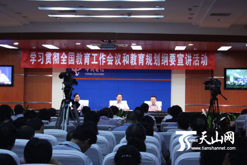 宣講會由新疆維吾爾自治區(qū)黨委常委爾肯江?吐拉洪主持,新疆生產(chǎn)建設(shè)兵團(tuán)副司令員宋建業(yè)出席。本次宣講活動以視頻會形式進(jìn)行,自治區(qū)黨委統(tǒng)戰(zhàn)部、教育廳、編辦、發(fā)改委、民(宗)委、財政廳、人力資源和社會保障廳、新聞出版局以及兵團(tuán)相關(guān)部門負(fù)責(zé)人,部分地州、兵團(tuán)分管教育負(fù)責(zé)人,自治區(qū)教育廳、兵團(tuán)教育局有關(guān)部門負(fù)責(zé)人,部分高校、中職和中小學(xué)校長在主會場參會。自治區(qū)各地州、縣(市),兵團(tuán)各師、團(tuán)教育行政部門中層以上干部,高校、中職和部分中小學(xué)校長在分會場參會,總計近萬人直接聽取了宣講報告。 (記者 楊晨光 蔣夫爾)