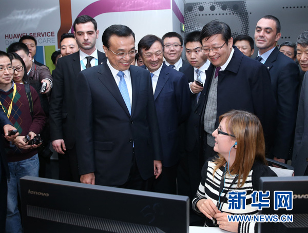 11月27日,正在羅馬尼亞訪問的國務院總理李克強參觀中國華為技術羅馬尼亞公司。這是李克強同當地員工親切交談。新華社記者 龐興雷攝