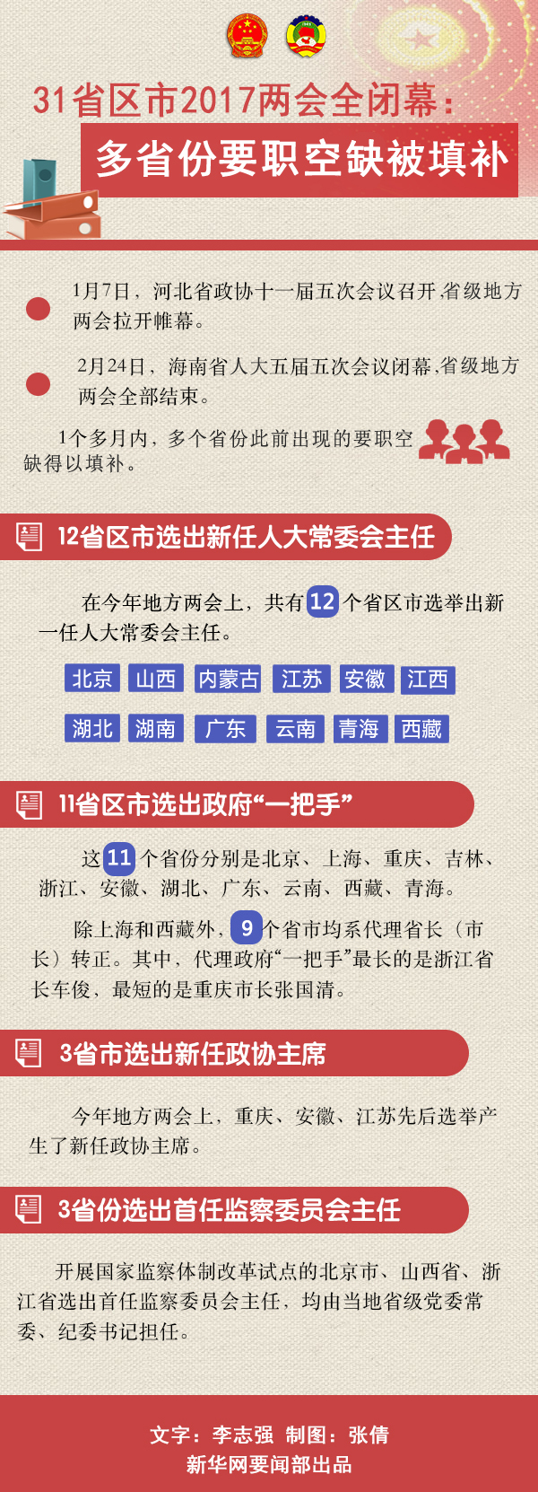 【圖解】31省區(qū)市2017兩會(huì)全閉幕:多省份要職空缺被填補(bǔ)