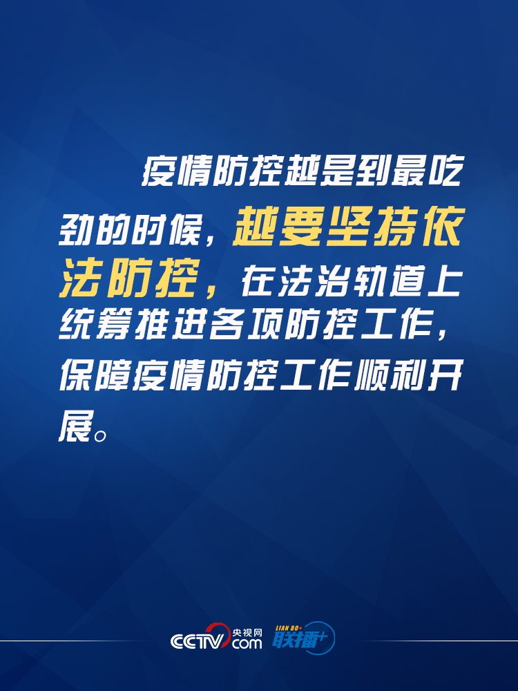 在疫情防控的關(guān)鍵時(shí)期,我們要更好發(fā)揮法治固根本、穩(wěn)預(yù)期、利長(zhǎng)遠(yuǎn)的保障作用,依法科學(xué)有序防控,奮力打贏疫情防控阻擊戰(zhàn)。