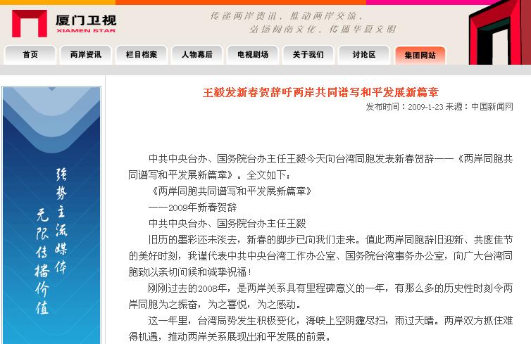《兩岸同胞共同譜寫和平發展新篇章》 ——2009年新春賀辭