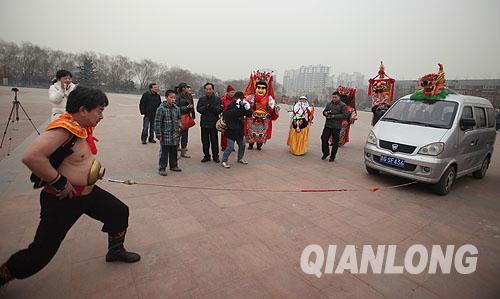 其中,天橋著名的“爬桿兒于”的后代于健表演的單耳拉汽車,在一只耳朵上栓上繩子,能拉動(dòng)一輛面包車,堪稱京城獨(dú)一份兒。而卞輝表演的羅圈獻(xiàn)彩,空手拿著兩個(gè)騰編的籠屜,卻能為您“獻(xiàn)”出一桌的酒席。此外,京城快板名家李春華的徒弟、快板小神童安子元還將表演花唱繞口令,這個(gè)“我要上春晚”節(jié)目的“人氣王”雖然才15歲,卻將快板打得出神入化。