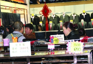 商販們也開始忙碌了,柜臺上擺滿整齊的貨物,供顧客進行選擇。在鄂爾多斯市東勝區的大興早市、民生廣場、北國新天地等地方,可以隨處看見人們大包小包的購買年貨,過節的氣氛濃郁而喜氣。