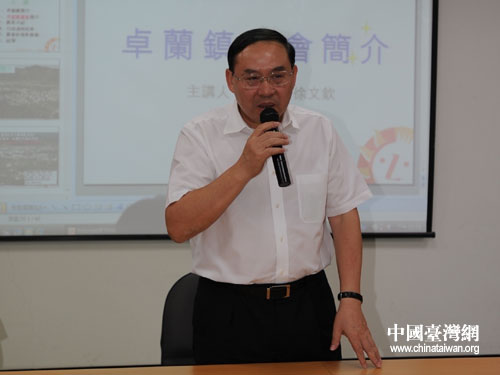 梅克保在聽取農會組織負責人介紹卓蘭鎮水果生產銷售情況后講話。(湖南省臺辦 李蘭 攝)
