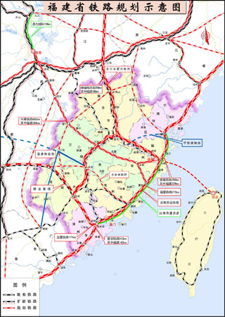 “369海峽鐵路網(wǎng)”即:建設(shè)沿海、杭閩廣、浦建龍梅等“三縱”;北京-合肥-福州-臺(tái)北、昆明-漳州-廈門(mén)-高雄、衢州-寧德、橫峰-福州、向塘-莆田、長(zhǎng)汀-泉州等 “六橫”;形成連接海峽經(jīng)濟(jì)區(qū)的九個(gè)環(huán)狀鐵路。