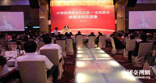 中國(guó)臺(tái)灣網(wǎng)6月20日臺(tái)北消息 6月17日下午,“中原經(jīng)濟(jì)區(qū)合作之旅――走進(jìn)臺(tái)灣”經(jīng)貿(mào)合作交流會(huì)在臺(tái)北內(nèi)湖舉行。河南省長(zhǎng)郭庚茂,副省長(zhǎng)史濟(jì)春出席交流會(huì)。鴻海集團(tuán)董事長(zhǎng)郭臺(tái)銘,世貿(mào)中心董事長(zhǎng)王志剛,丹尼斯董事長(zhǎng)王任生以及臺(tái)灣工商、經(jīng)濟(jì)、教育界等人士參加交流會(huì)。
