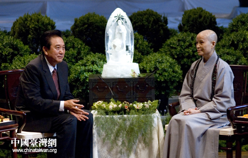 陳云林首先為慈濟對四川汶川地震災區同胞的無私援助,向證嚴法師表示感謝。