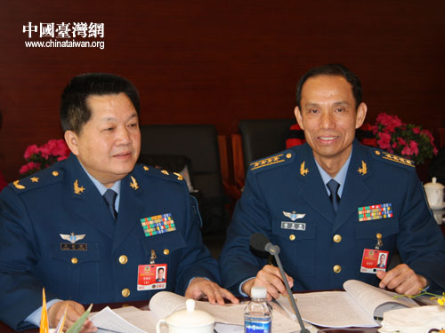 中國(guó)臺(tái)灣網(wǎng)3月10日北京消息 今天上午,全國(guó)政協(xié)會(huì)議臺(tái)聯(lián)界別組正在舉行熱烈的小組討論,一位身著戎裝的解放軍記者突然帶著兩臺(tái)相機(jī)出現(xiàn)在會(huì)場(chǎng),并向臺(tái)聯(lián)組的兩位軍人委員熱情的打招呼。這時(shí)在場(chǎng)的其他委員和記者才恍然大悟,今天黃植誠(chéng)和林賢順兩位委員之所以穿著筆挺的軍裝出席小組討論,是因?yàn)樵缇托闹敲饕俺鲧R”呢!(賀晨曦 文 賀晨曦/趙輝 圖)