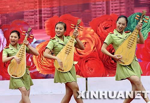 當日,“頌歌向著太陽唱――南京群眾歡慶黨的十七大”大型群眾演唱會在南京水木秦淮廣場舉行。一些文藝工作者和社區群眾載歌載舞,歡慶黨的十七大勝利閉幕。 新華社記者 孫參 攝