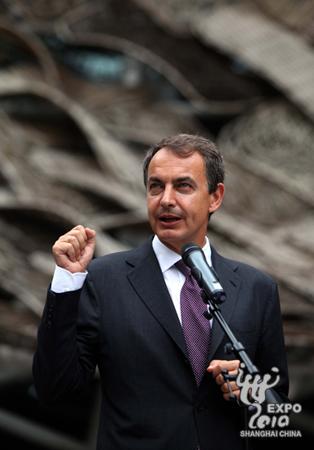 西班牙首相何塞·路易斯·羅德里格斯·薩帕特羅在西班牙館即興發表演講