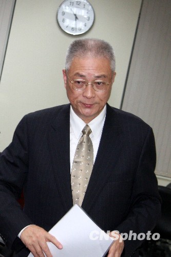 9月9日晚10時,被馬英九新任命為臺灣“行政院長”的吳敦義,在中國國民黨中央黨部中山廳舉行記者會,宣布江宜樺為“內政部長”等約40項一級政務主管任命案。 中新社發 董會峰 攝