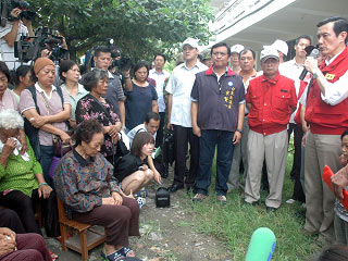 馬英九10日到臺(tái)東了解災(zāi)情,并慰問災(zāi)民,與災(zāi)民面對(duì)面溝通。來源:臺(tái)灣“中央社”