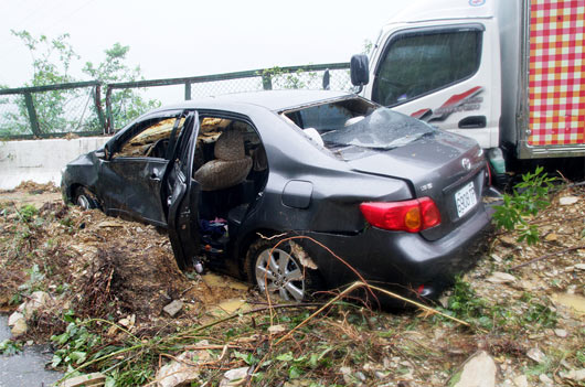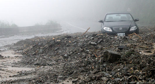臺風“鲇魚”所帶來的強風豪雨致蘇花公路嚴重塌方,不少車輛遭崩落的土石砸毀 圖片來源:臺灣《聯(lián)合報》