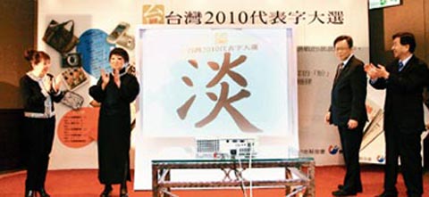 中新網12月16日電 據臺灣《聯合報》報道,臺灣2010代表字票選15日揭曉,“淡”字以近萬票拔得頭籌,成為最能代表今年臺灣社會風景與民眾心景的漢字。