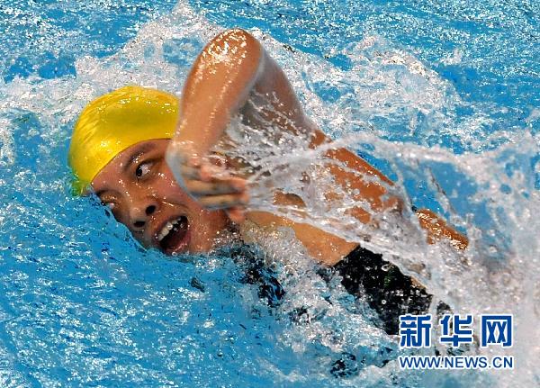 12月13日,中國選手蔡余慶燕在比賽中。當日,在廣州2010亞殘運會游泳比賽女子S9級400米自由泳決賽中,中國選手蔡余慶燕奪得冠軍,為中國代表團獲得首枚金牌。新華社記者王頌攝