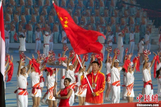 中新網廣州11月27日電 (記者 張子揚)廣州亞運會閉幕式27日晚間在海心沙上演,沒有出乎太多人意料,在男籃決賽中將中國男籃推上冠軍之巔的王治郅最終成為中國代表團旗手。這位34歲的老兵,在沒有姚明領銜中國隊的情形下,成為本屆亞運會中國軍團中最亮眼的明星。