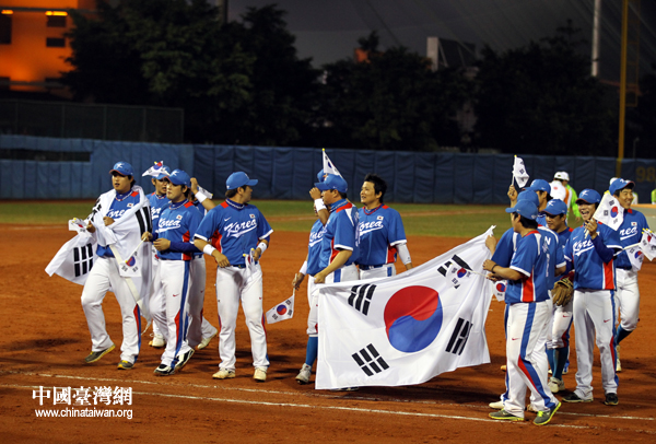 亞運(yùn)棒球決賽,韓國(guó)隊(duì)獲得冠軍。(中國(guó)臺(tái)灣網(wǎng) 鐘寶華 攝)