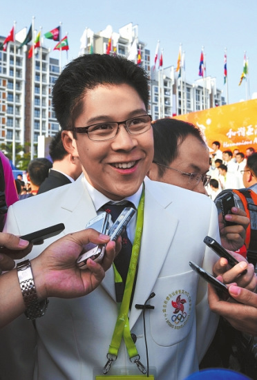 升旗儀式結(jié)束后,霍啟剛便和香港代表團(tuán)的運(yùn)動(dòng)員們簇?fù)碓谝黄鸷嫌傲裟睿鳛榇韴F(tuán)副團(tuán)長的他,自然沒有忘記自己的身份。“這一次你會(huì)去看跳水嗎?”當(dāng)華西都市報(bào)記者將這個(gè)問題拋給霍啟剛時(shí),他笑了一笑:“我就知道你要問我這個(gè)問題,在香港我就一直被問這個(gè)問題,到這里來還是被問這個(gè)問題,哈哈。”霍啟剛的普通話非常標(biāo)準(zhǔn),周圍的香港媒體聽到了霍啟剛這樣回答,也都笑了起來。