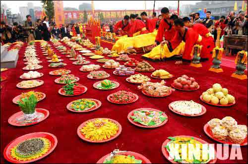 在過去,每年到了除夕夜,許多人家都會(huì)擺上一桌天地桌,上面擺滿了祭神用的各種貢品和蠟燭,墻上貼好了要拜的神像。此種習(xí)俗傳說中是為了要接神仙下屆而特意準(zhǔn)備的。雖然現(xiàn)在這種封建傳統(tǒng)已經(jīng)被破除,但它本身也不失為一種有意思的民俗活動(dòng)。