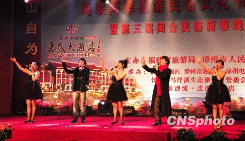 2月22日晚,海峽兩岸民俗文化節暨第三屆閩臺民俗新春晚會在福建漳州長泰濃情上演,參演人員超過半數來自臺灣,使晚會變得“臺味”十足,讓現場觀眾連連拍手叫好。