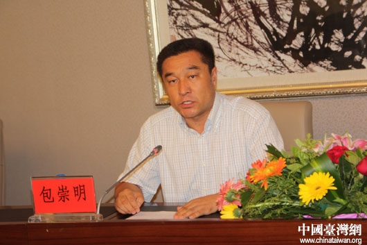 鄂爾多斯市副市長包崇明向全國知名網(wǎng)絡(luò)媒體記者介紹鄂爾多斯經(jīng)濟(jì)社會發(fā)展情況。(中國臺灣網(wǎng) 王文英 攝)