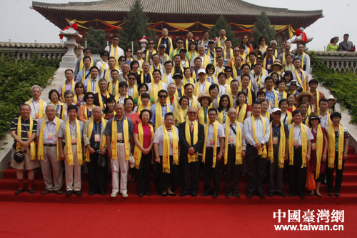 情系燕趙——兩岸文化聯誼行的全體嘉賓在祭拜中華民族三祖后合影(中國臺灣網 蕪同 攝)